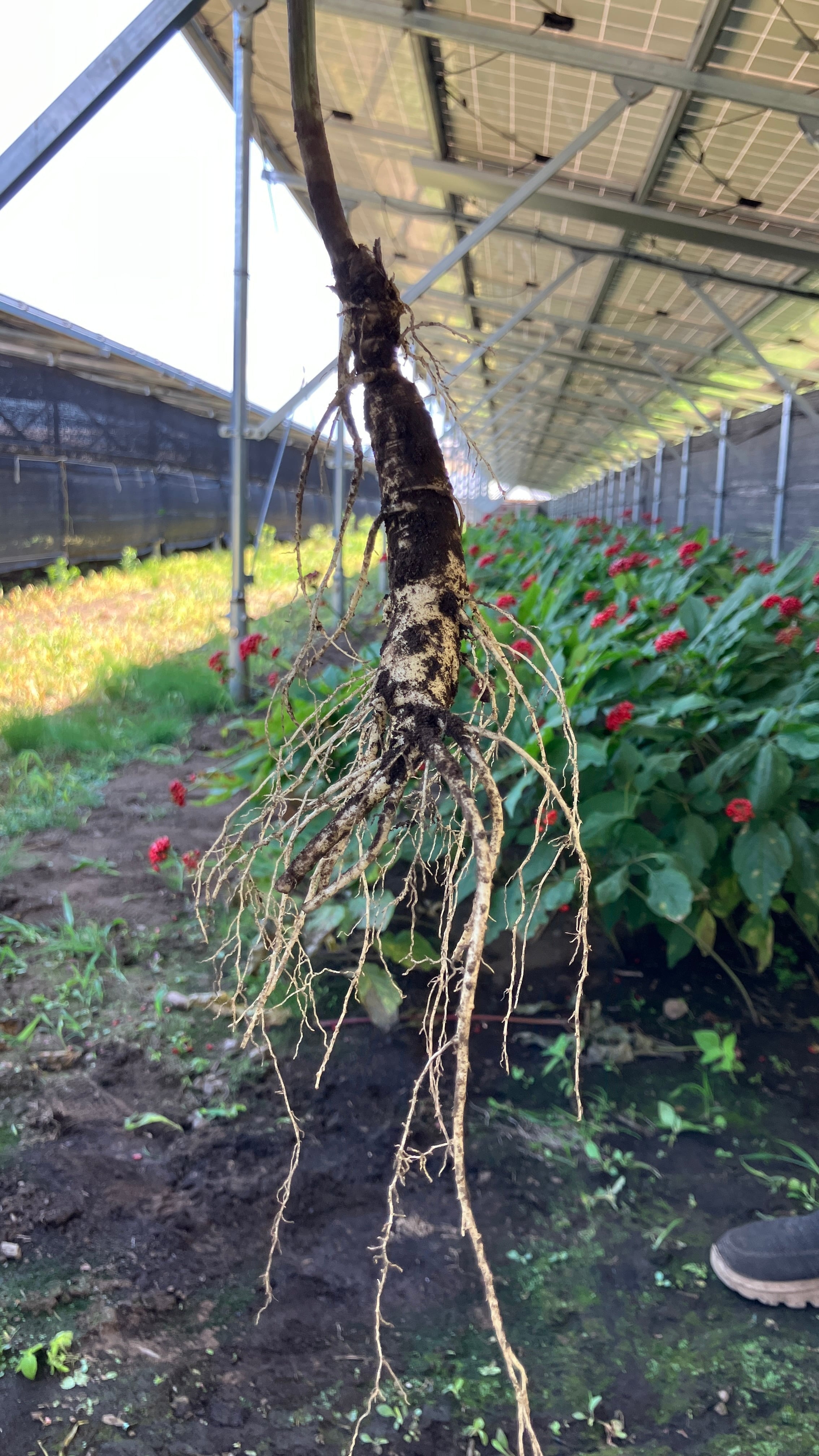 8〜10年かけてやっと慣行栽培の4〜5年根と同じくらいの姿になります。